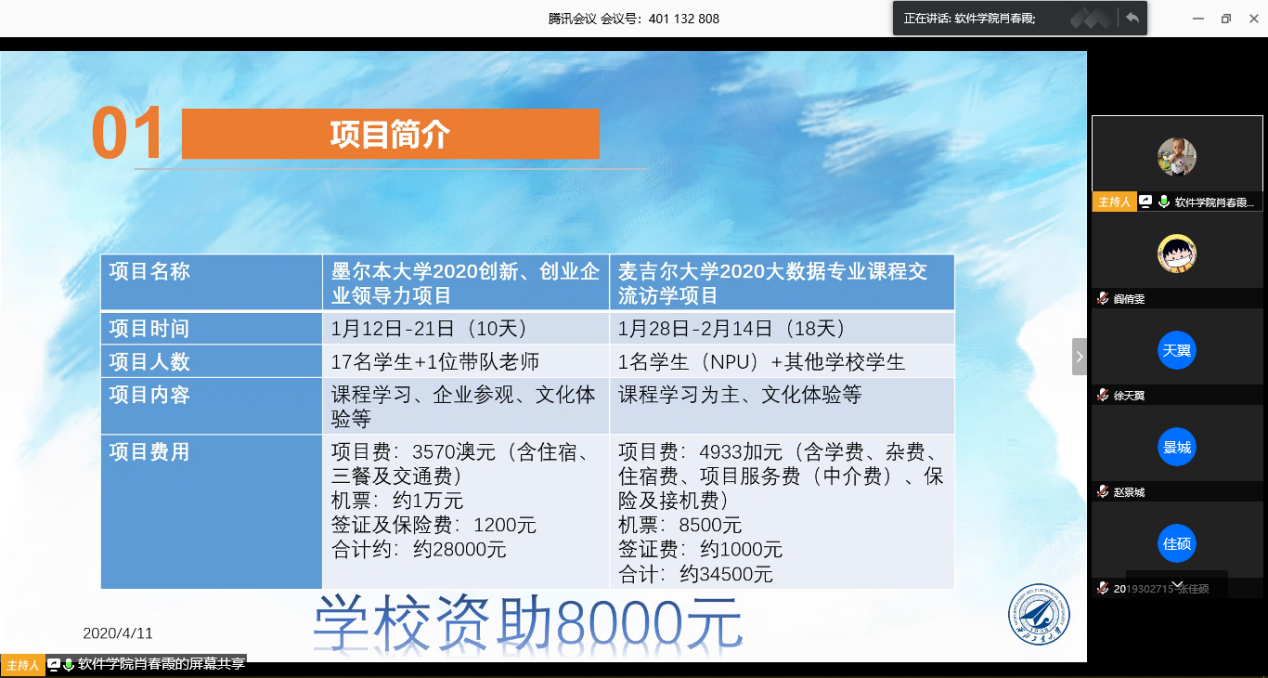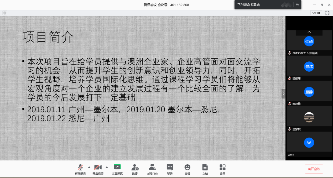 于腾讯会议系统成功举办2020墨尔本大学、麦吉尔大学寒假项目分享会。本次分享会由此次寒假项目带队老师、成人探花