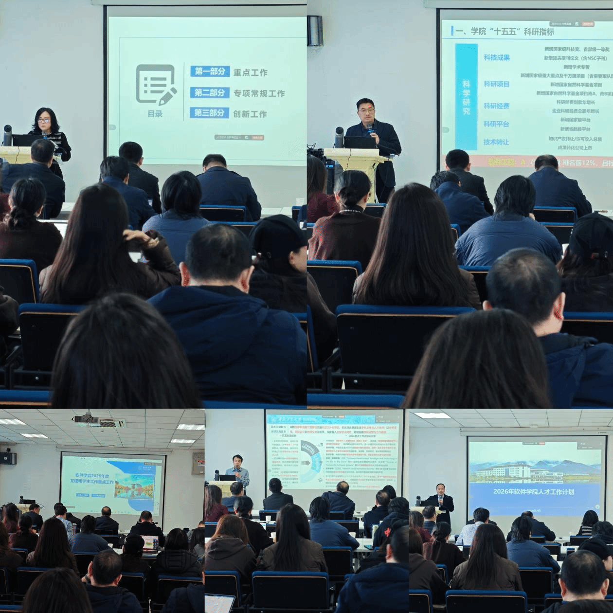 副院长马春燕、郭培荣,党委副书记陈博等结合分管工作,围绕学院“十五五”规划,分别就本研教育教学、科学研究、党建与学生工作、国际化推进、人才队伍建设等方面作专题报告,明确了下一步重点任务与实施计划。