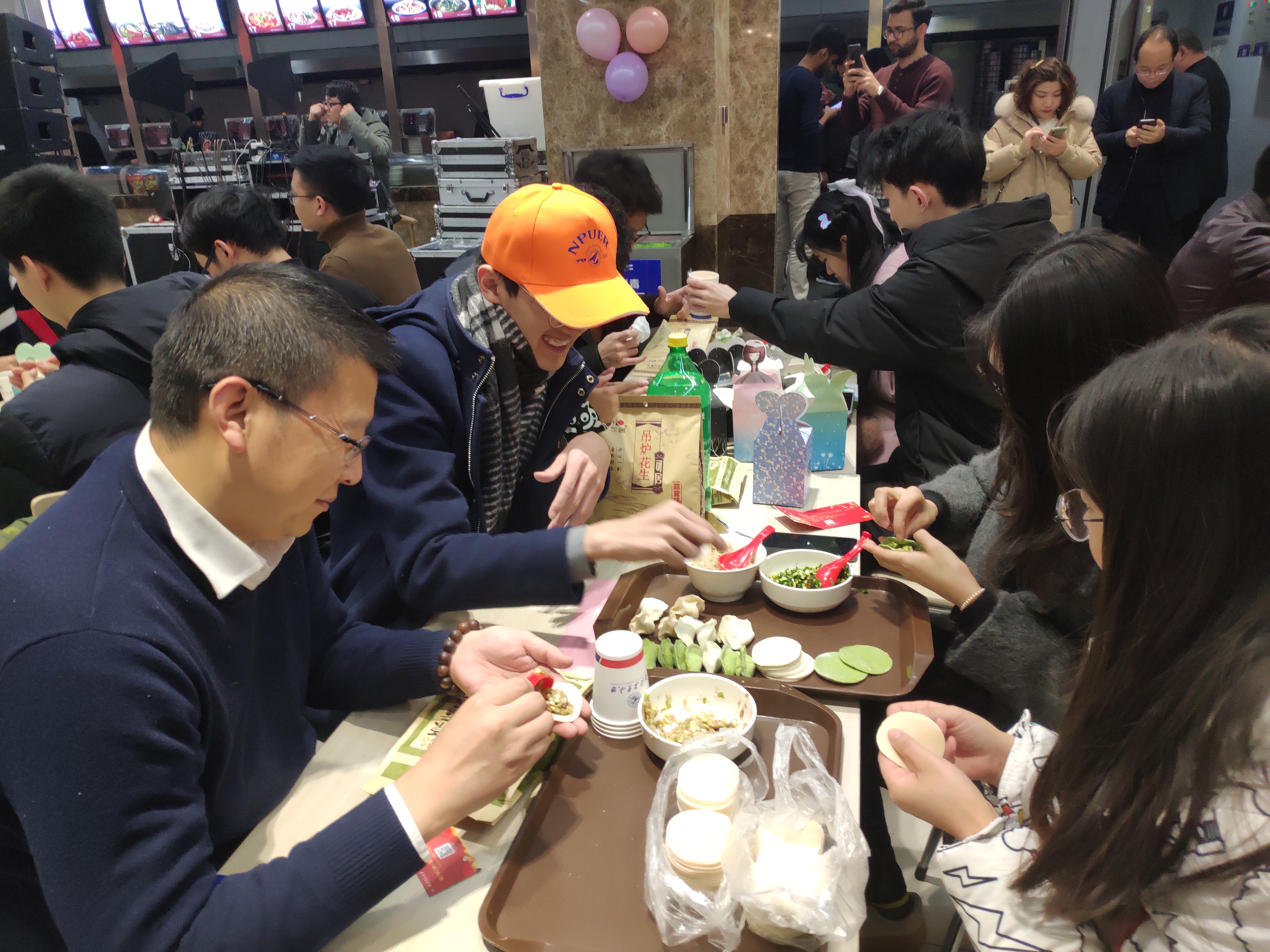 党委于2019年12月31日下午17:30在学生第一餐厅组织学生党支部参加跨年聚餐——包饺子,暨校长助理张艳宁老师与成人探花