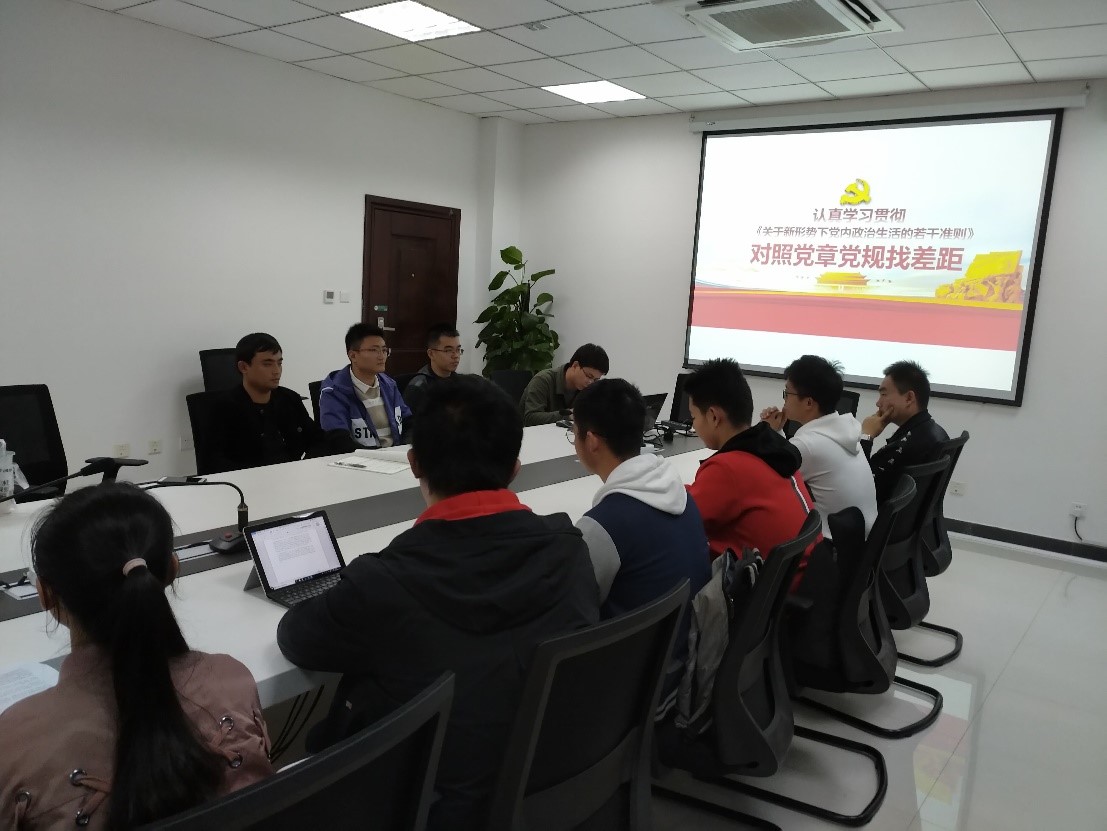 研究生第四党支部召开“对照党章党规找差距”专题组织生活会。支部全体党员参加了本次会议,会议由支部书记王泽海同志和支部纪律委员杨凡同志主持,由组织委员朱奎宇同志、宣传委员田亚峰同志进行会议记录,副书记王一博同志负责会议总结。