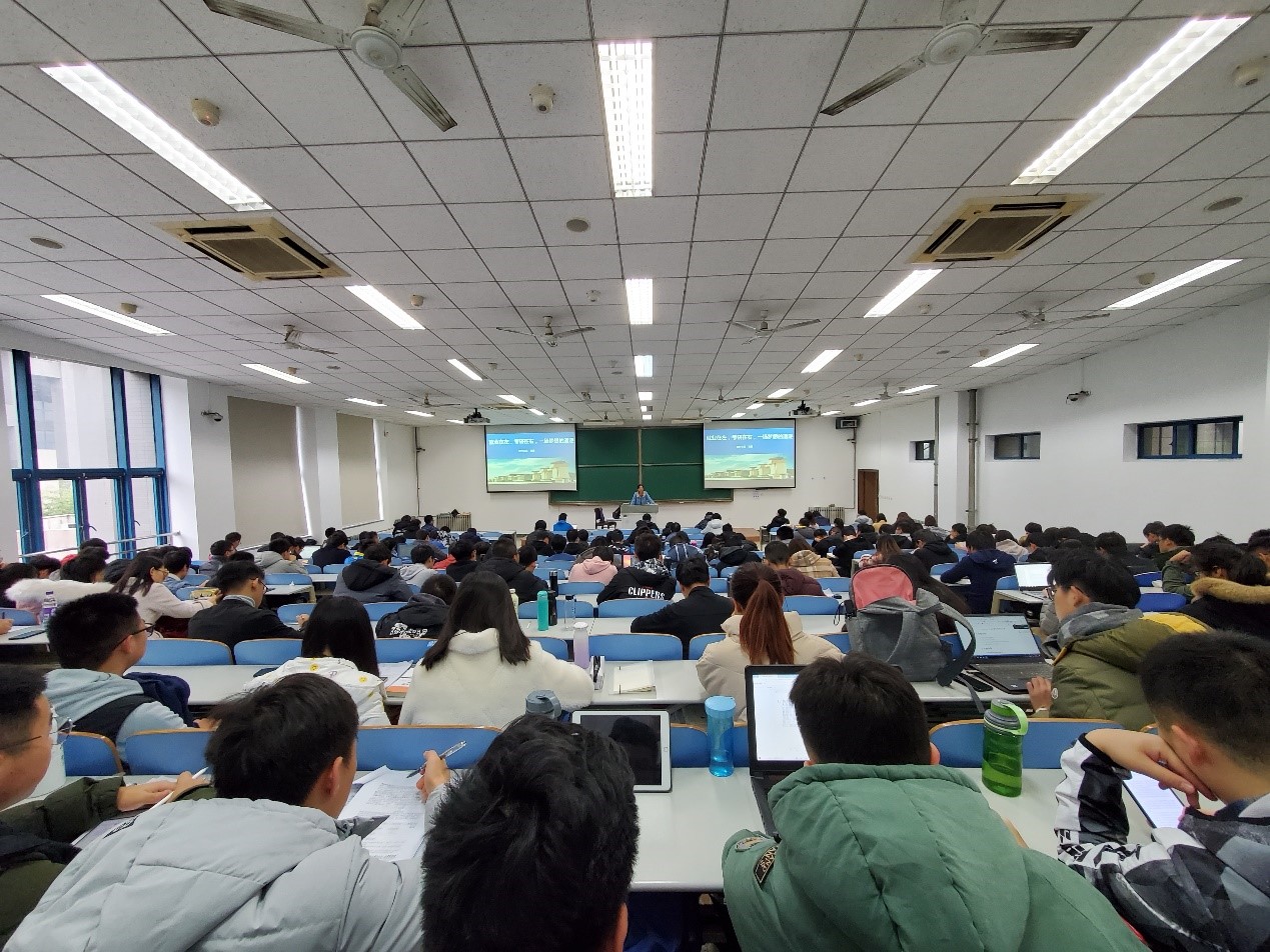 党委副书记张琨为2017级本科生进行了以 “就业在左,考研在右,一场梦想的追逐”为主题的职业生涯规划讲座。