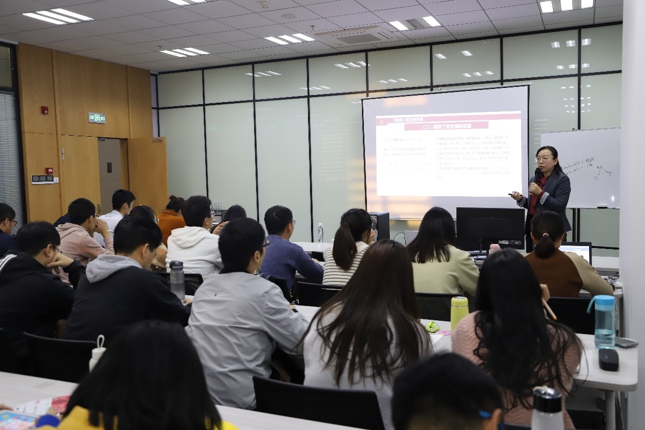 党委副书记张琨为学院研究生太仓党支部全体党员及入党积极分子讲授题为《学习贯彻<中国共产党支部工作条例>,加强基层党组织建设》的专题党课。