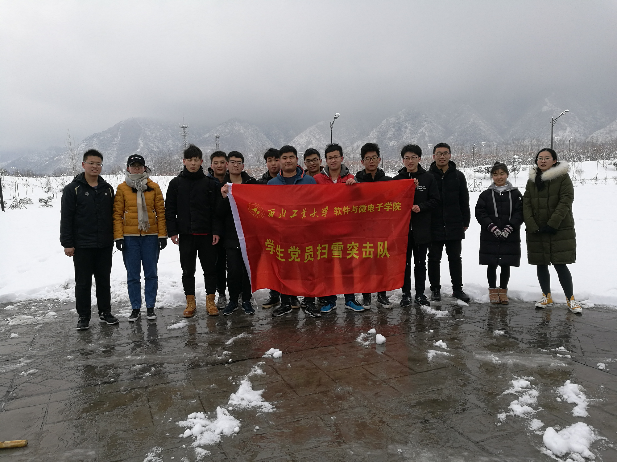 研究生第三党支部)于2018年11月号召发起成立“学生党员扫雪突击队”,由支部和18214-3班共计20人参加,冬日扫雪突击,情暖新区师生。