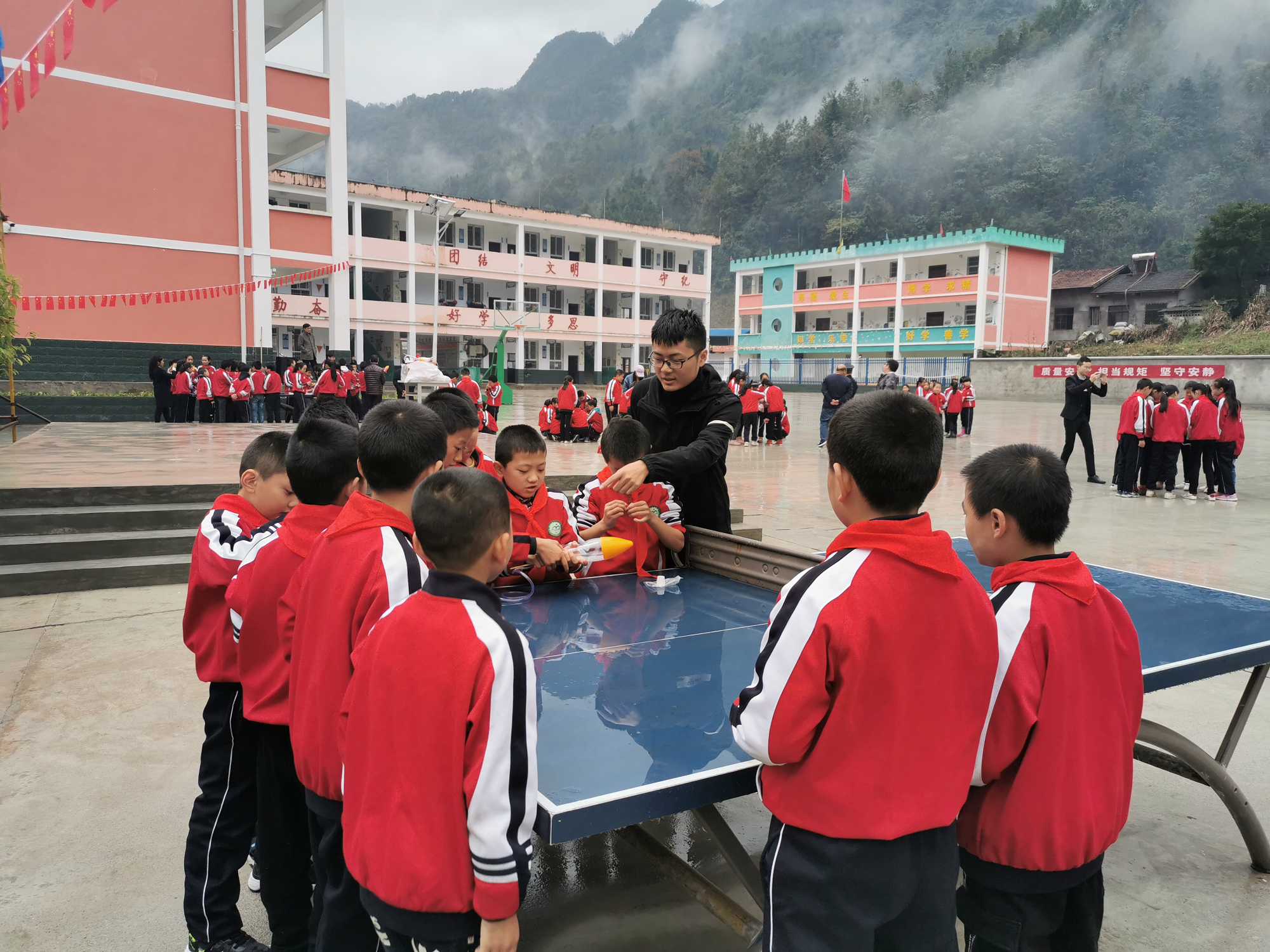 党委师生党员代表等共计12人,来到汉中市镇巴县巴山镇中心小学开展主题为“软心筑梦、情暖巴山”的志愿科普教育扶贫活动。活动主要包括科普知识讲座、放飞水火箭和原理介绍、舞蹈机器人表演以及飞机模型的拼装和放飞等内容。