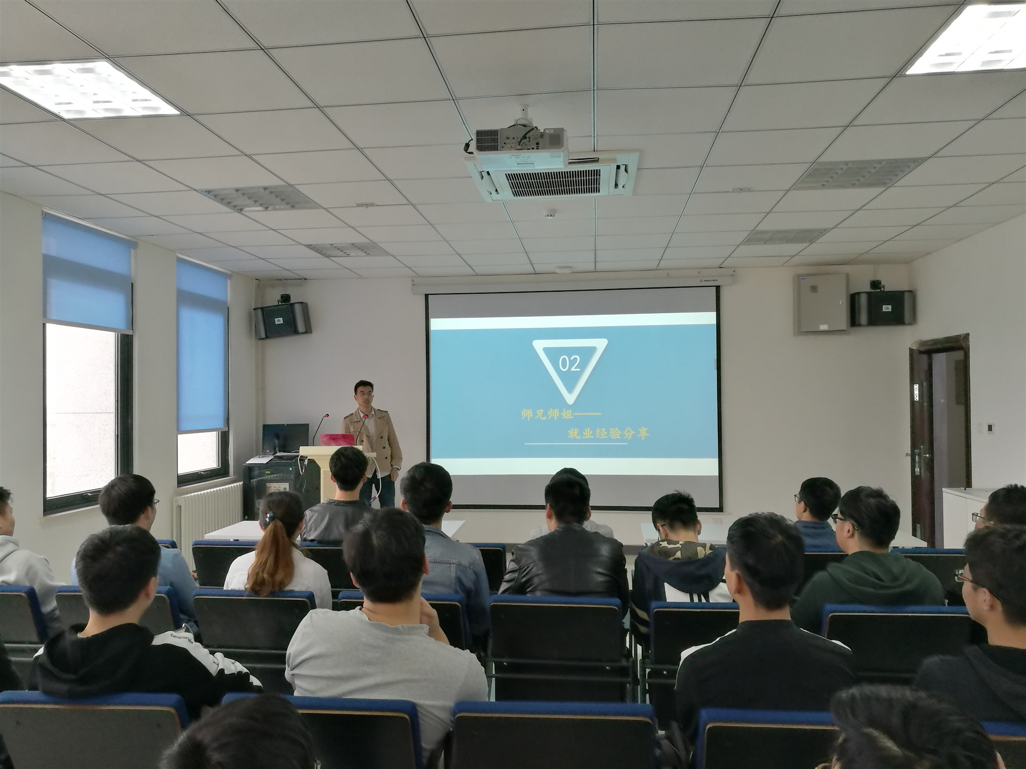 接下来是2019届毕业研究生的经验分享环节。学院邀请到了今年签约腾讯、阿里、华为等知名公司的毕业生前来分享就业的经验。在经验分享过程中,签约北京还是科技有限公司的2019届毕业研究生肖金霸为大家分享了自己在就业过程中的经验,希望大家都能打好坚实的技术基础,为顺利签约做好铺垫;签约浙商银行的卜迪说到:“研究生在学习科研中要善于发现问题,同时还要积极解决问题。只有在发现问题并努力解决问题后,自己的能力才会得到更好地提高。”签约阿里巴巴的张仁宇曾在美团、腾讯等知名公司实习,他为大家分享了自己的实习经验和投递简历的技巧,在座的同学们纷纷表示很为受用;签约华为的王文杰询问到师弟师妹们目前的实习情况,并为大家分享了实习与签约之间的联系,希望大家都能把握好实习的机会;同样签约华为的朱皓谈到研究生要尽早对自己的未来进行规划,同时要树立好自己的信念与信心,并努力朝自己的规划目标去努力。会后,2017级、2018级研究生与师兄们积极沟通交流,关于实习的疑惑、就业方向的选择、就业单位的选择方面都进行了深入的交流。