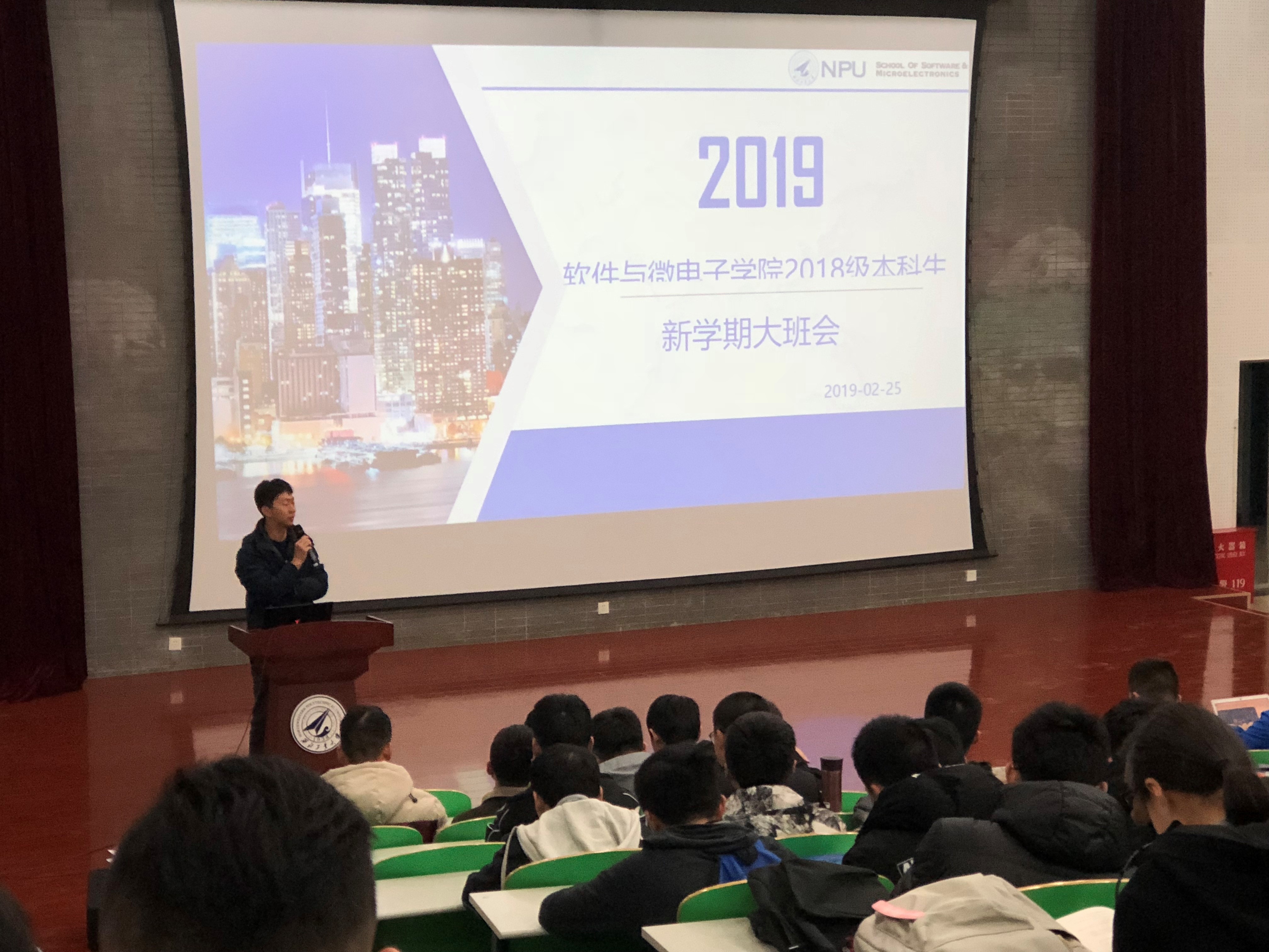 2月25日晚七点半,软件与微电子学院2018级本科生2018-2019春学期第一次大班会在教西A100教室如约而至。本次会议由2018级辅导员樊超主持,从喜迎新征程,回顾旧学期,展望新学期,规则与制度四个方面对上一学期的成绩与工作进行总结与分析,对新学期的学习生活方方面面进行展望和安排。