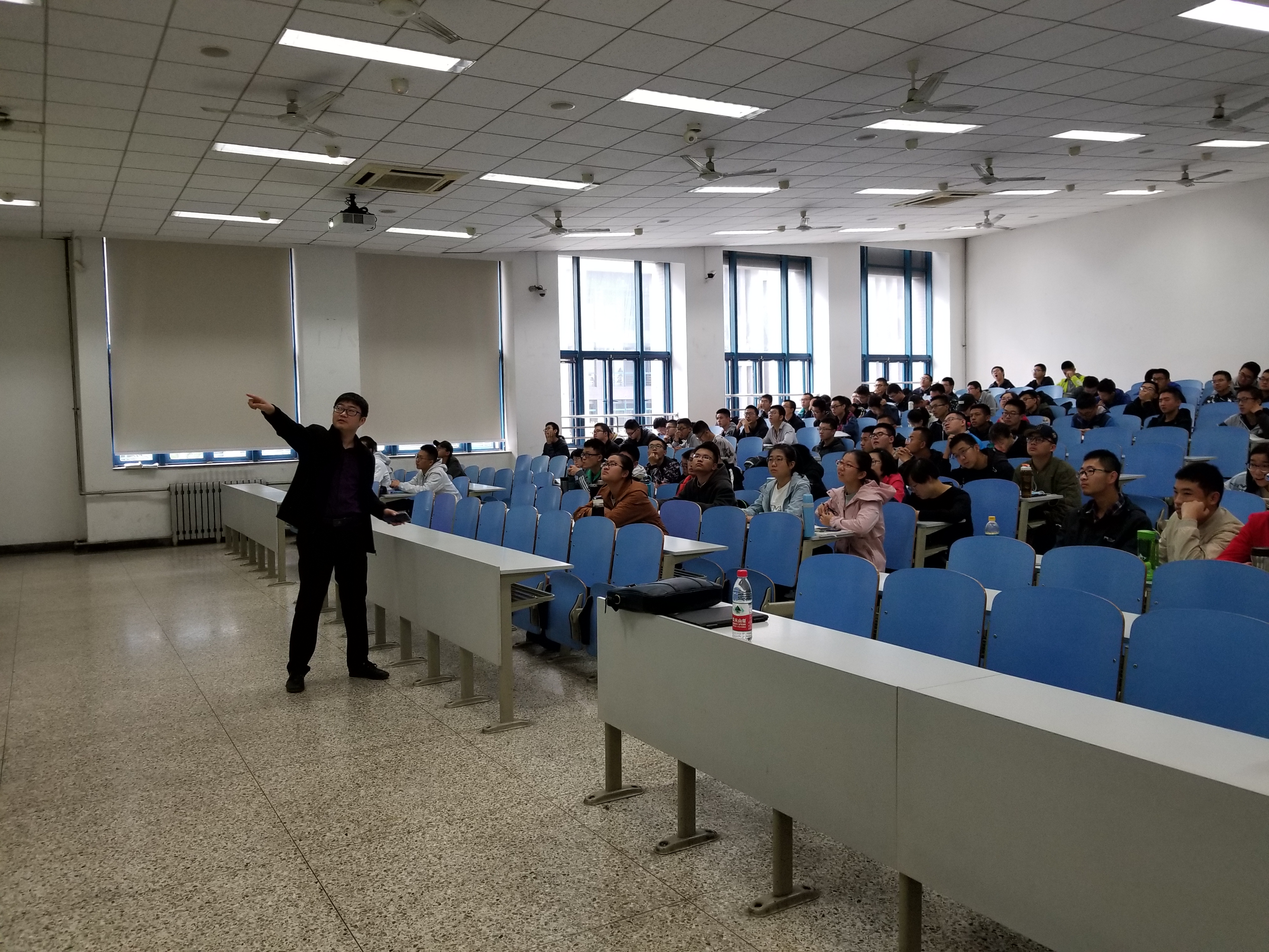 后面,刘世伟介绍了他的学习、工作以及创业的经历,向同学们讲到在大学要真正的丰富自己,坚定自己的理想,多学真正本领,在以后少走弯路错路,他还向大家展示了他们公司开展的关于IT行业现在基于大数据对于人才评估的新方法,让同学们开拓了眼界。