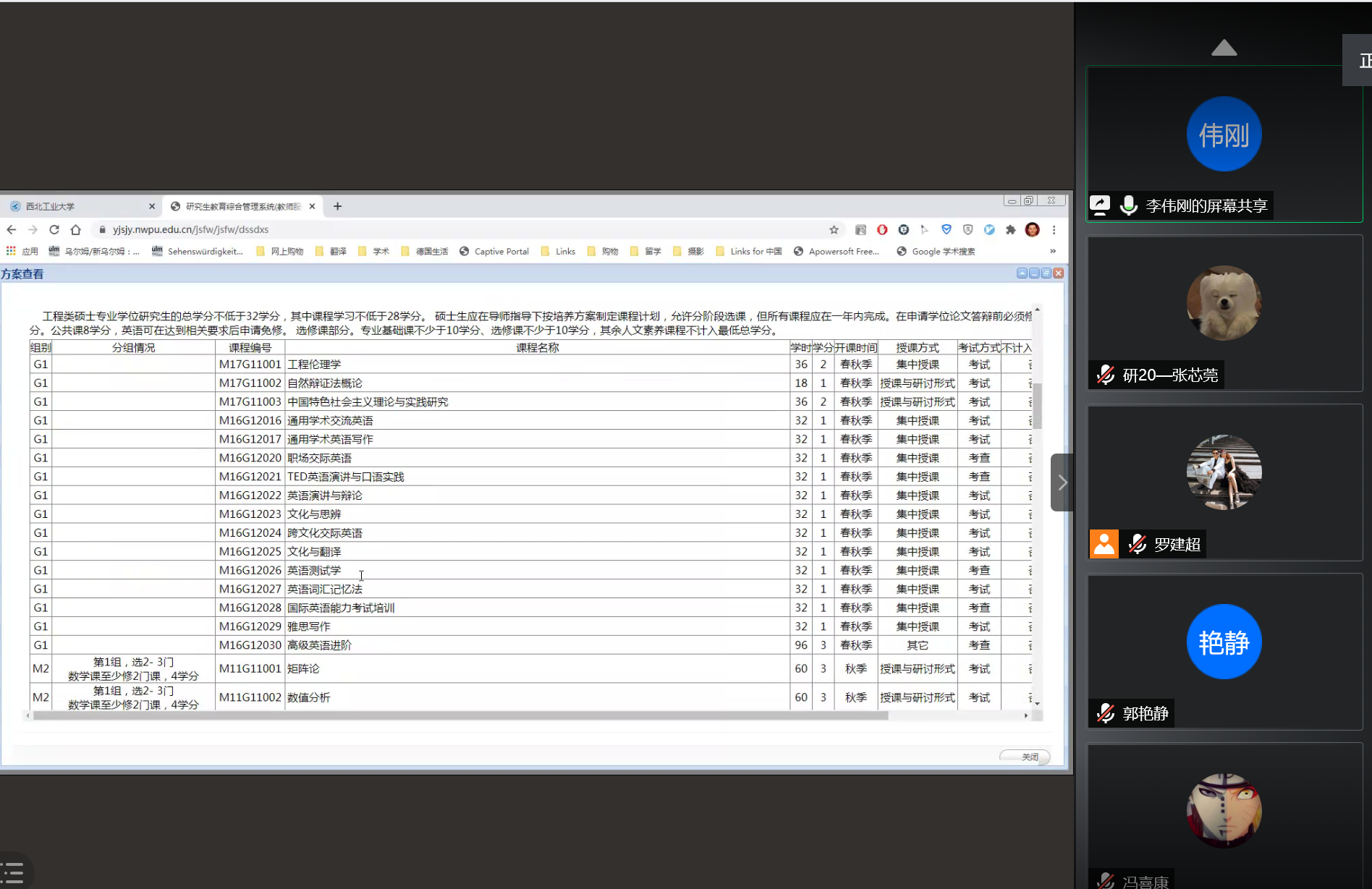 30日上午10:30,第四学习研讨组在线上开展了学习研讨。第四学习研讨组由李伟刚老师、张涛老师担任组长,罗建超老师担任小组秘书,共有10余名教师代表和2名研究生学生代表参与。会议主要讨论的主题有:加强课程体系建设,提升课程教学质量;加强关键环节监控,健全质量监督机制两大主题。