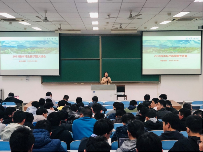 紧接着,齐老师向同学们说明了本学年的大致工作安排。本学年对于2018级同学们来说至关重要,除专业课的学习外,同学们需要结合自身实际确定目标和方向,合理安排时间,为考研、保研、就业、实习和出国等做好准备。其中,4月份需注意积极分子推优和入党材料的申请和审核;5月会下发专业实习实践课内容,同学们需及时联系实习单位或实验室安排暑期实习以获得实践学分。6月除课程考试外,保研的同学需要注意夏令营的申请和参营。而9月后则会进行研究生推免、奖助学金评定、考研和毕业设计等环节,同学们都需要留心注意,合理安排好自己的时间。