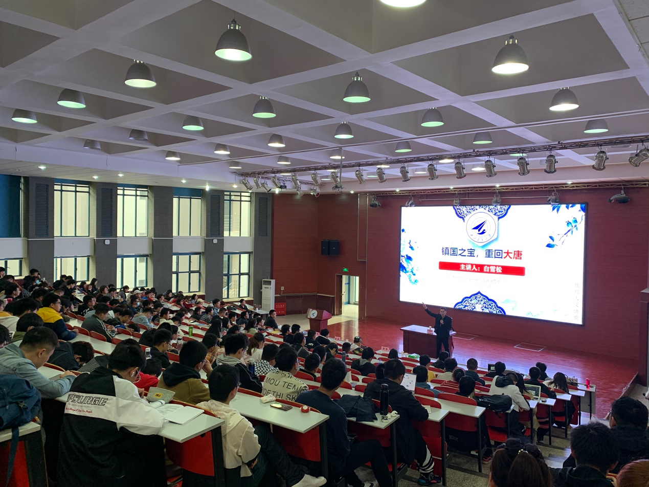 、数学与统计学院承办的2021年“翱翔人文讲堂”第二期在长安校区教西D100举行。西安碑林博物馆特级讲解员白雪松应邀为我校师生带来“镇国之宝,重回大唐”主题讲座。党委学生工作部副部长、学生处副处长彭蓉、数学与统计学院党委副书记张莹及全校300余名师生参加了本次讲座,讲座由成人探花
