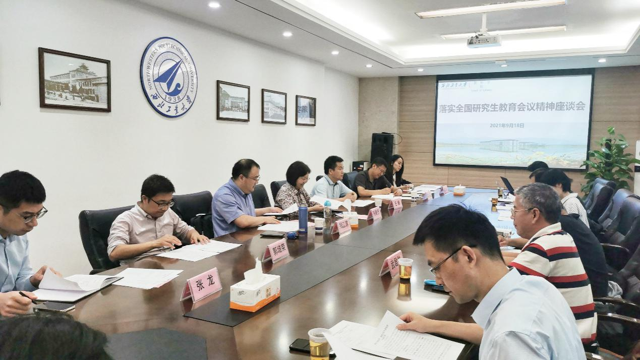 于9月18日下午,在友谊校区学校办公楼A座223会议室召开了进一步落实全国研究生教育会议精神座谈会。校长助理兼研究生院院长张艳宁,研究生院副院长王鹏、质量办公室张洁,成人探花