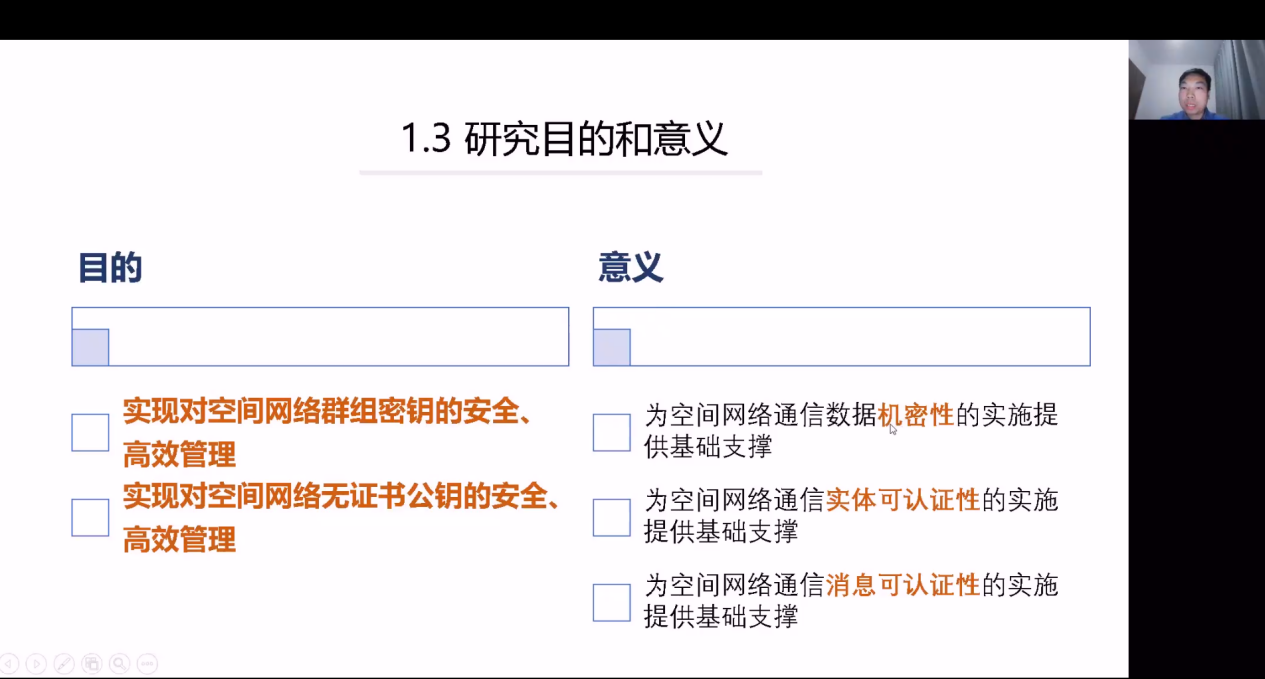 通过实例的讲解,刘老师接下来对该项技术的目的进行了阐述。这项技术在实现对空间网络群组密钥及空间网络无证书公钥的安全与管理方面,得到较好的应用,这不仅造福于社会,同时也为我们空间网络通讯数据的机密性、实体可认证性及消息可认证性的实施提供了基础支撑与保障。