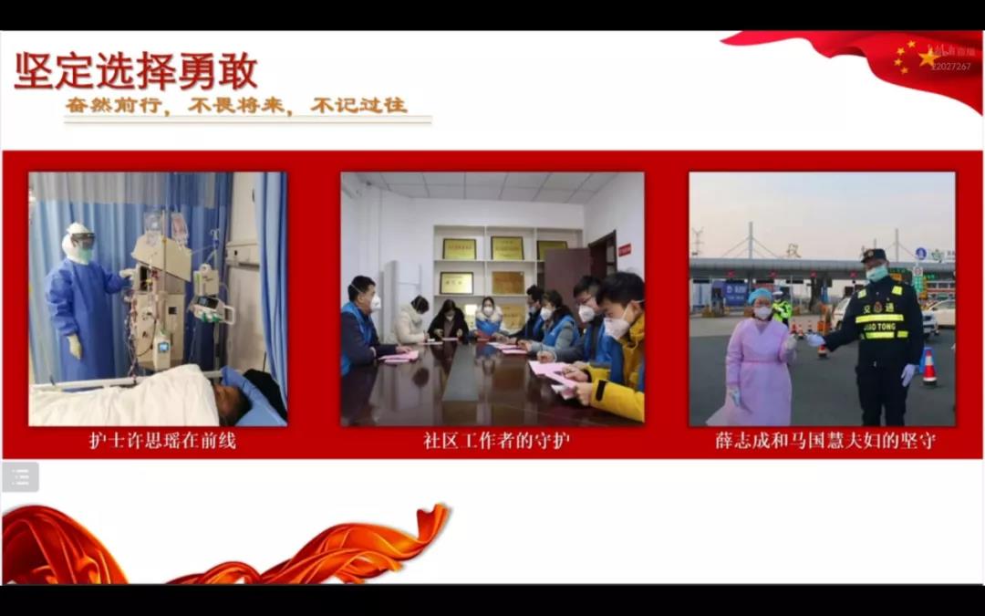 的同学们进一步理解了十九届六中全会精神,更加深刻认识到,身处于百年未有之大变局中的我们青年一代,要勇于担当,不负使命,肩负起时代重任。当前,西安已然成为抗疫的主战场,纵使病毒打乱了我们生活的节奏,我们依然相信,在我们的共同努力下,疫情终将退去,国家也一定会越来越强大!