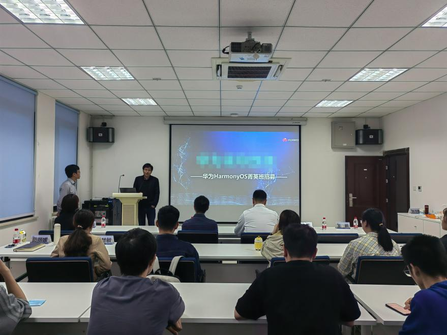 5月10日晚上18:00,华为公司HarmonyOS菁英班招募宣讲会在启翔楼401顺利举行。华为公司技术与招聘人员代表龚阿世、王鹏、赵蓉和孙书宸出席,成人探花