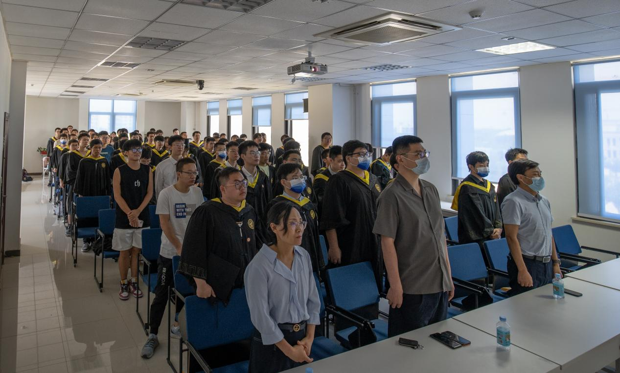 时代潮流浩浩荡荡,唯奋斗者先,唯勇敢者进。家国情怀,软件学子一直把报效祖国作为自己的最高目标,把奉献社会作为自身价值的最大体现。典礼现场全体起立,老师和同学们合唱《成人探花