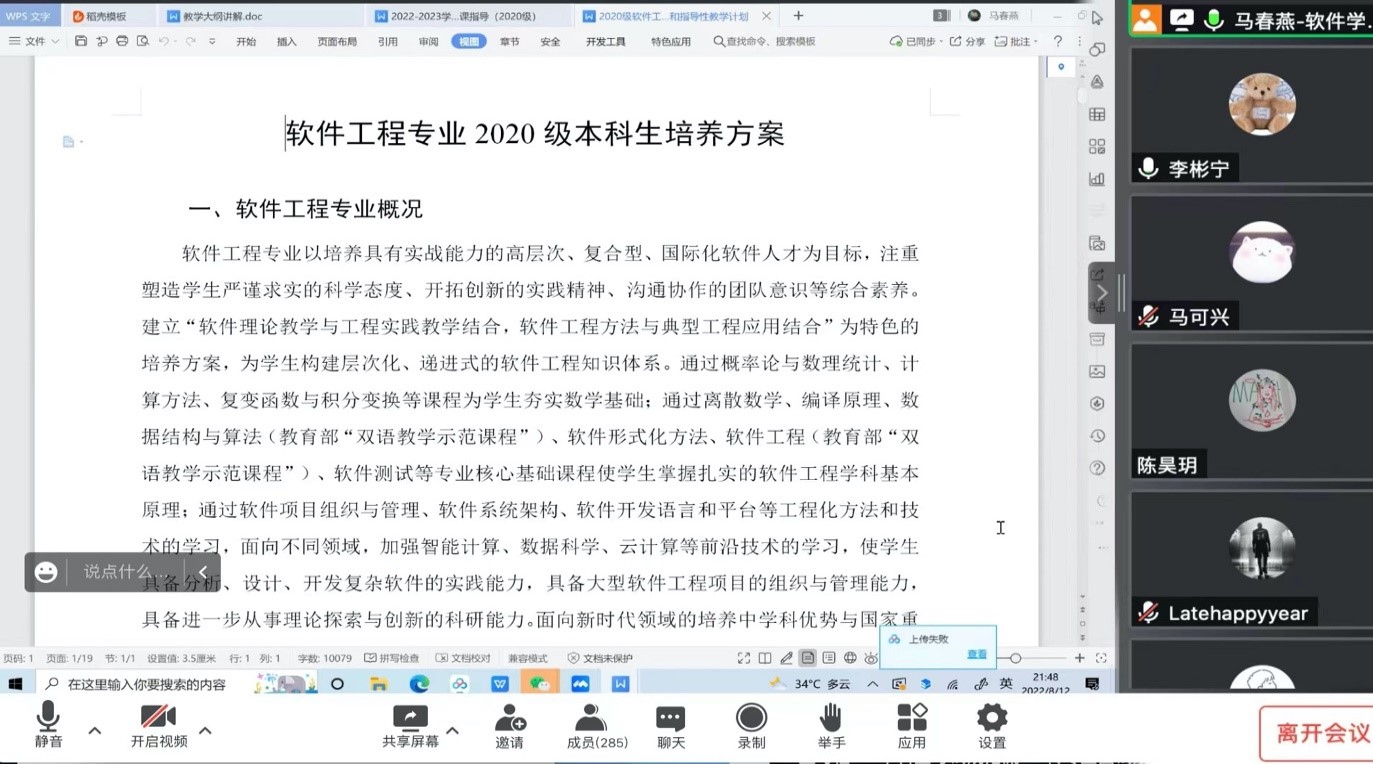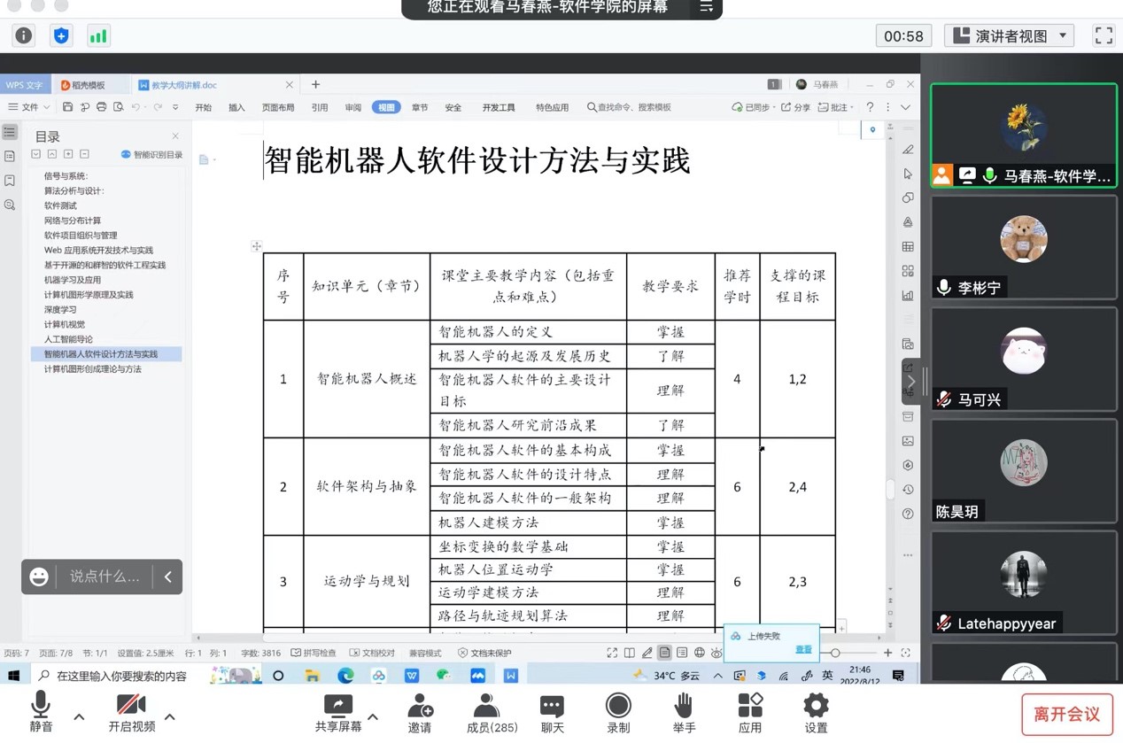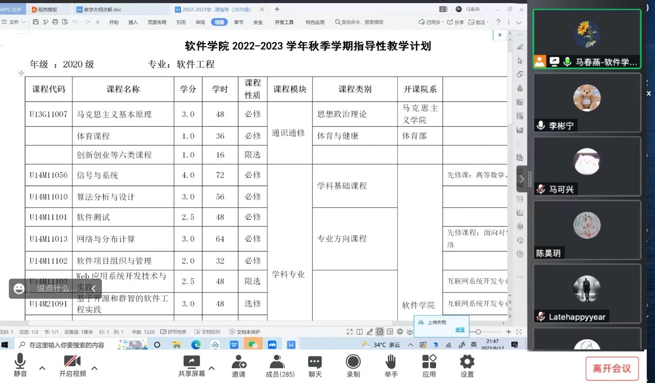 通过线上腾讯会议平台,召开本科生选课指导会,该会议由学院教学副院长马春燕老师主持并讲解。2020级全体本科生、本科教学办公室管理教师、2020级辅导员及班主任等265人参会。