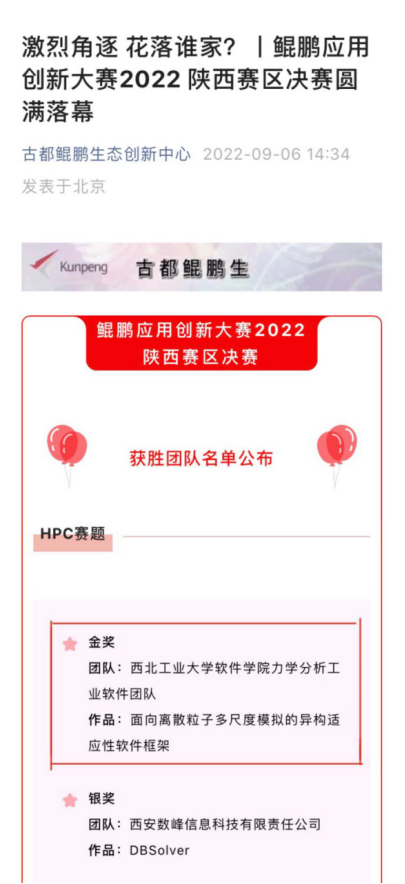 9月6日,鲲鹏应用创新大赛2022·陕西赛区决赛在西安举行,成人探花