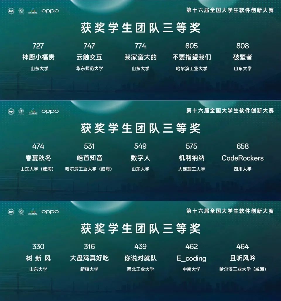 经过激烈角逐,最终大赛共产生一等奖队伍5支,二等奖队伍10支、三等奖队伍15支,还评选出最具智慧作品、最佳组织奖以及指导教师代表奖。