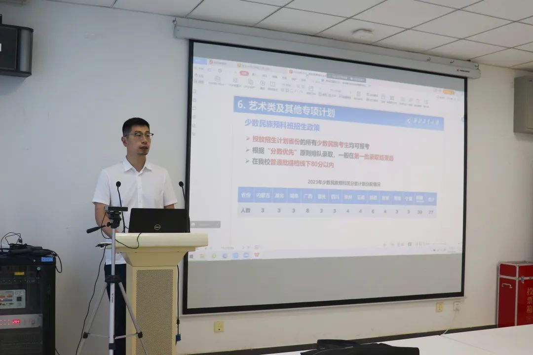 张龙随后详细解读2023年学校的招生政策、志愿指导、宣传方案、注意事项等内容,对上半年参与招生工作的学院领导和老师们表示感谢,张龙表示招生工作以落实《成人探花