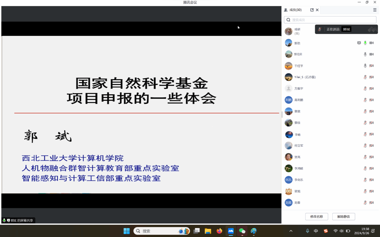 教师们针对报告内容和自己在基金申请中遇到的疑惑提出了问题,郭斌教授做了深入细致的解答和建议。