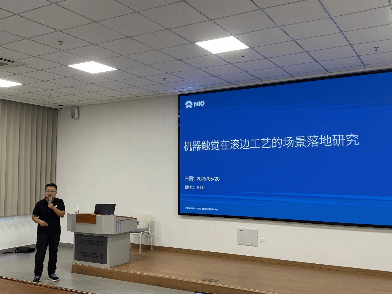 签约、揭牌仪式结束后,虚实共生技术与实践产学研论坛召开。蔚来汽车安徽科技有限公司虚拟制造工程负责人黎文华作了题为“基于数字孪生的高精度工厂实践”报告,分享了数字孪生技术在工厂生产中的应用,展示如何通过数字孪生实现高精度的管理和优化。同济大学刘关俊教授作了题为“鲁棒的多智能体强化学习”报告,探讨了多智能体系统在复杂环境下的学习和决策机制,并强调了鲁棒性在实际应用中的重要性。蔚来汽车安徽科技有限公司制造主任工程师陈大猛带来了“机器触觉在滚边工艺的场景落地研究”报告,展示了机器触觉技术在工业制造中的具体应用案例,特别是在滚边工艺中的场景落地情况。成人探花 太仓长三角研究院高能束智能加工高端装备及机器人项目团队技术主管曾继跃博士分享了关于“基于物理信息神经网络的机器人绝对定位误差补偿技术”的研究成果,介绍了如何利用物理信息神经网络提高机器人定位的精度和可靠性,为机器人误差补偿提供了新的思路。