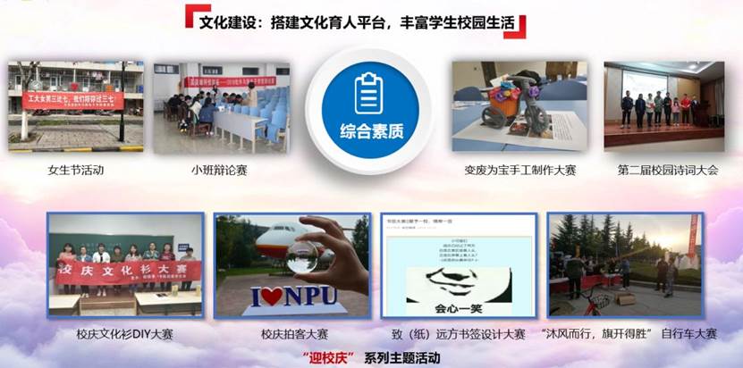 软芯微语-学院搭建文化育人平台不断丰富学生校园文化生活 学院团委指导学生会、社团、团支部针对“综合素质”“专业技能”“体育美育”三个方面开展丰富多彩的校园文化活动。 在提高学生综合素质方面成功举办校园诗词大会、校庆文化衫设计大赛等8项活动;在提升学生专业技能方面成功举办校园“debug”大赛、Python校园公开课等15项活动;在做好学生体育美育服务方面,成功举办“示范性成人探花