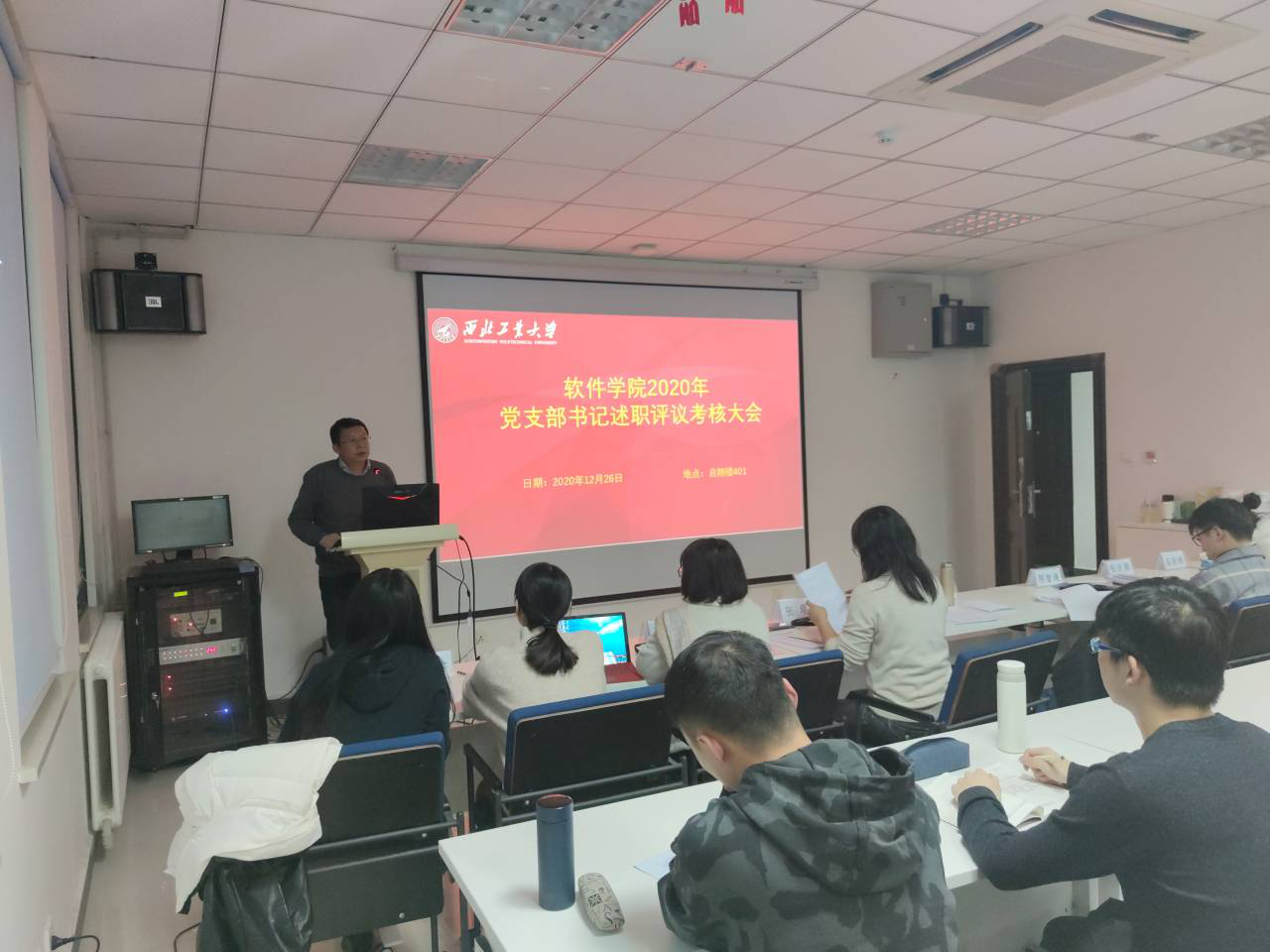 党委于2020年12月26日在启翔楼401报告厅召开2020年度党支部书记抓党建工作述职评议考核大会。党委筹备工作组成员、班主任、辅导员代表、党支部书记、学生党员及群众代表共40余人参加会议。