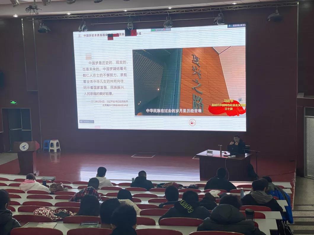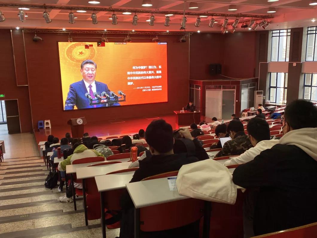 为什么要提出实现中华民族伟大复兴这一历史使命、如何理解中国梦的内涵及特点、实现中国梦的途径是什么?讲座一开始,陈诚平副教授提出三个问题让同学们进行思考,并以这三个问题为起点展开本场讲座。同学们在三个问题中陷入沉思,大家进行简单的互动后,陈诚平副教授从实现中华民族伟大复兴凝聚着几代人的夙愿;中国共产党义无反顾肩负起实现中华民族伟大复兴的历史使命;中国梦的本质是国家富强、民族振兴、人民幸福;中国梦是世界各国人民的美好梦想相同;实现伟大梦想必须进行伟大斗争、建设伟大工程、推进伟大事业这五个方面展开讲解,从而全面地回答了讲座一开始提出的三个问题。