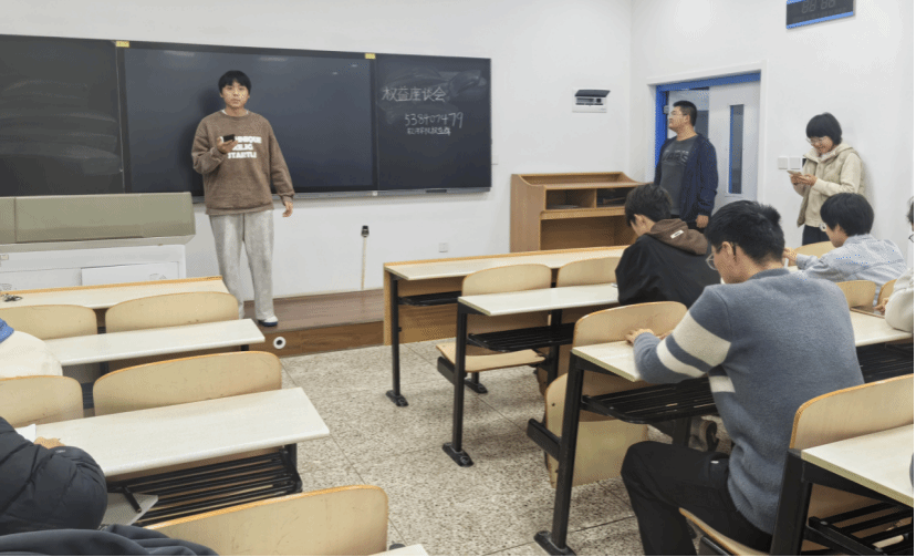 会议伊始,秦硕同学首先介绍了本次会议的主题、目的及学生权益工作的作用,并向在座的学生代表详细介绍了多种学生权益反馈途径。这些途径包括在线问卷调查、通过权益部反馈、向各班级班委反映问题以及参与线下权益部座谈会等。权益部希望学生代表们能畅所欲言,积极提出各年级学生在学习生活中所面临的各类权益问题。