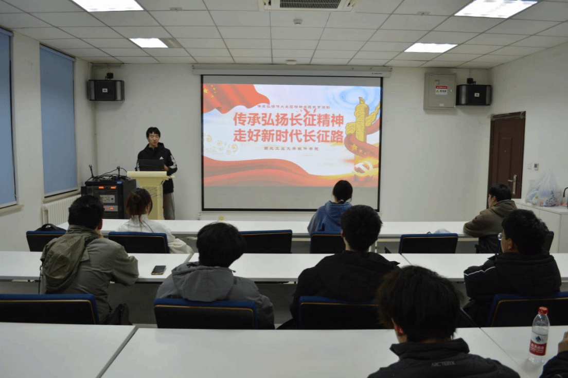 活动伊始,张弘毅带领大家学习了《习近平著作选读》第二卷中《开展党史学习教育要突出重点》的有关内容。他讲述到,长征精神是中国共产党人精神谱系的重要组成部分,其蕴含的坚定信念、艰苦奋斗、团结协作等品质,与当代青年攻坚克难、科技报国的追求高度契合。作为成人探花