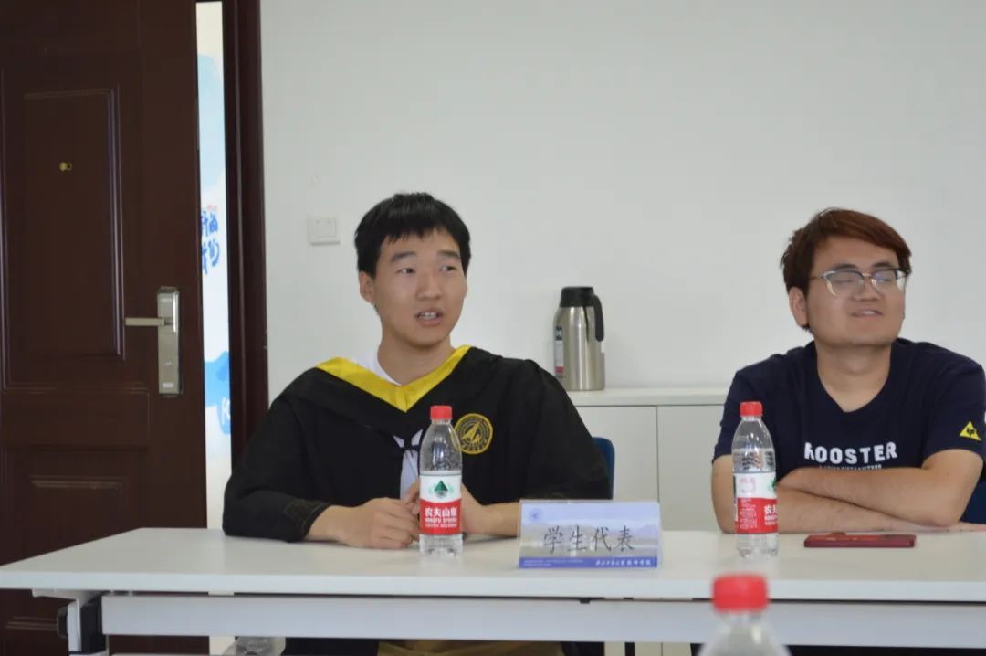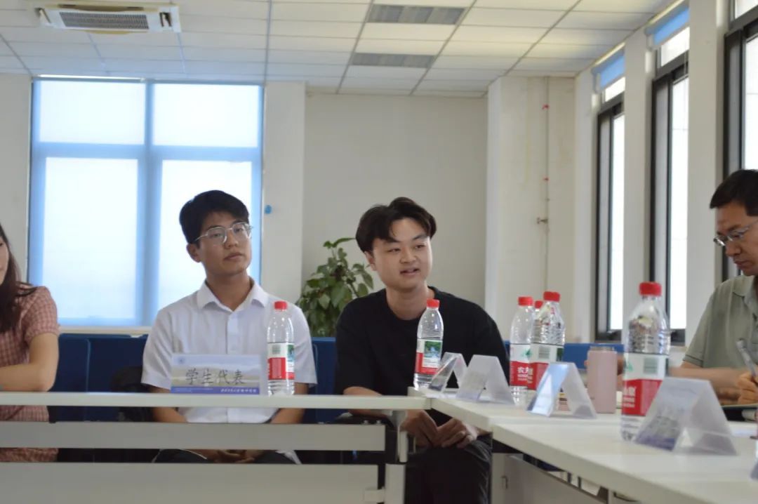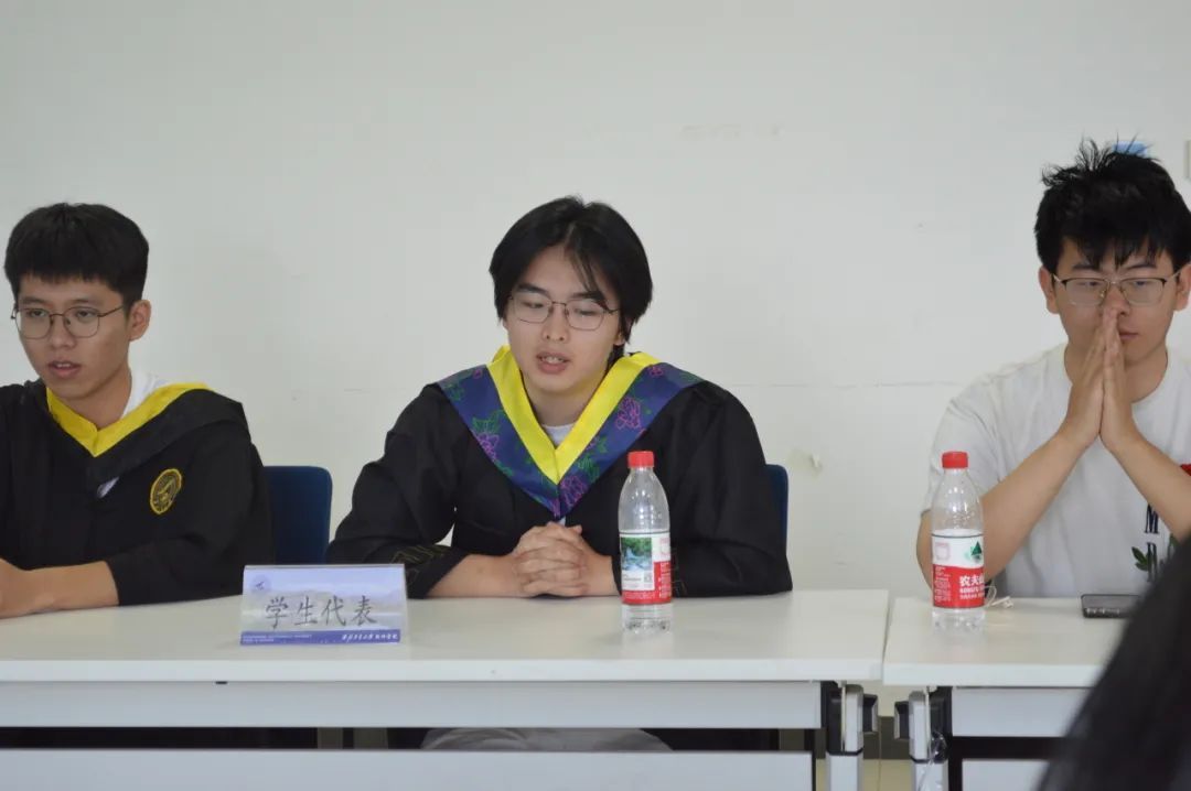 毕业生代表们首先真挚感恩学院四年来的教育培养,感谢老师们的悉心指导与学院提供的资源平台,让他们在专业学习中夯实基础、在实践探索中不断成长。随后依次分享了从初入校园的懵懂到综合能力提升的蜕变历程,畅谈求职、保研、深造路上的经验心得,为学弟学妹提供前行借鉴。最后,毕业生代表们围绕人才培养、学科建设、科研创新等方面提出建设性建议,参会老师们认真聆听,并表示将深入梳理同学们提出的宝贵意见,切实融入学院未来发展规划。