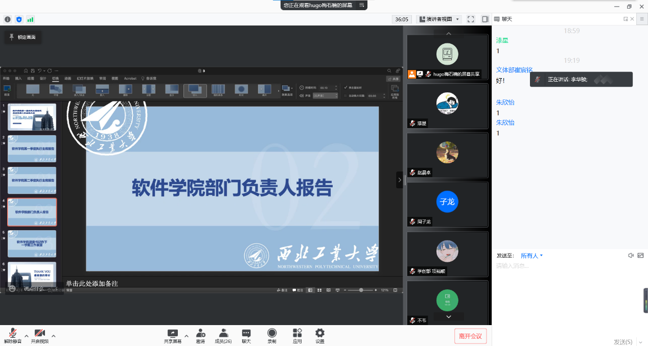 同时,各个部门也对未来工作提出了展望。明确了未来的进步方向,并根据本学期的工作经验,能够在新学期完善工作流程和工作制度,创新工作台账,不断更新学生会常规工作的规范化和程序化,提升学生会的工作效率和工作能力。更好地为同学们服务,继续彰显软件学子奋发向上、永不放弃的青春风采。