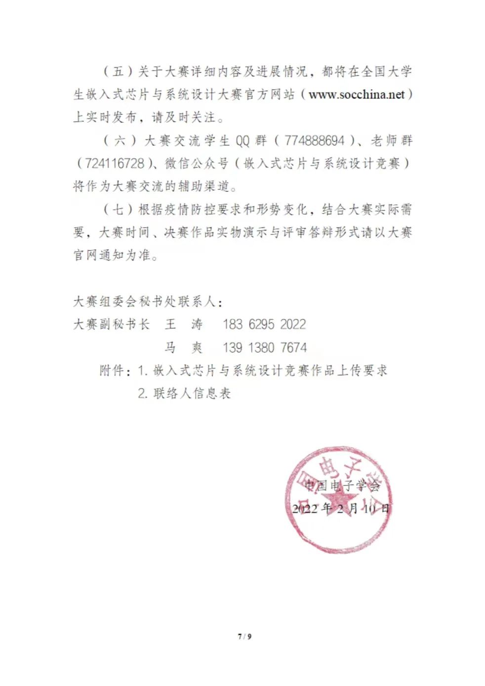 关于邀请参加第五届(2022)全国大学生嵌入式芯片与系统设计竞赛的通知