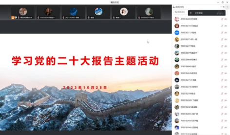 团委通过线上线下相结合的方式召开了学习党的二十大报告主题会议,团委书记张记国、团委副书记胡雅心、成人探花