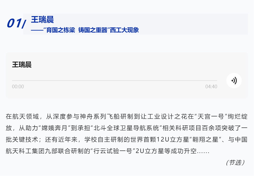 回望西工大历史长河,无数学子作浪花奔腾;漫步公诚勇毅的长廊;前辈故事仍历历在目;高歌青春奋进的旋律,爱国之声常萦绕耳畔……有一种感动叫红色,有一种温度叫朗读。