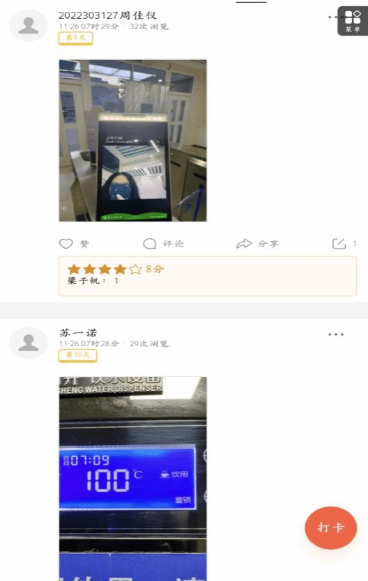 活动开展过程中,同学们积极参与,争先打卡,继而充分利用早晨这一宝贵时光,进行学习、阅读、锻炼及其他活动,充实了早晨的生活,极大提高了学习与办公的效率。正如2022级本科生朱忆南所说,这个比赛给了他一个机会去培养早起的好习惯,提高他的生活质量和效率。通过每天早起,他感受到了清晨的宁静和生命的活力,这让他更加有动力去追求自己的目标。朱忆南同学表示,他将继续保持早起的好习惯,并将这份动力延伸到其他方面的生活中。