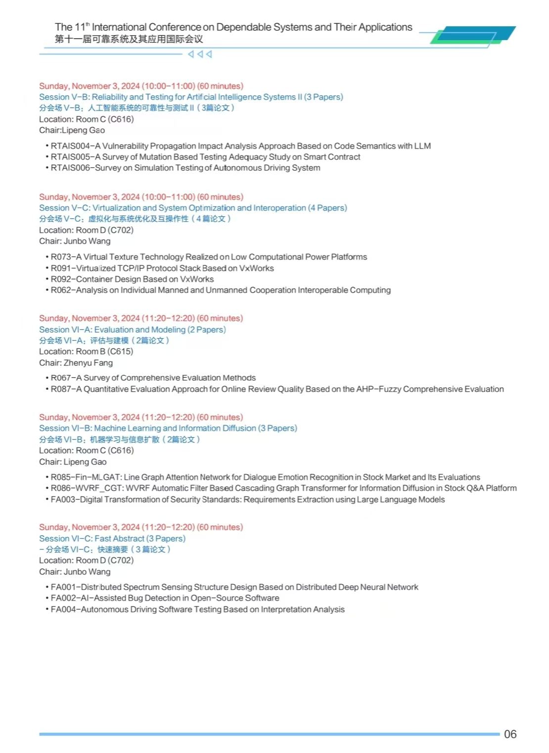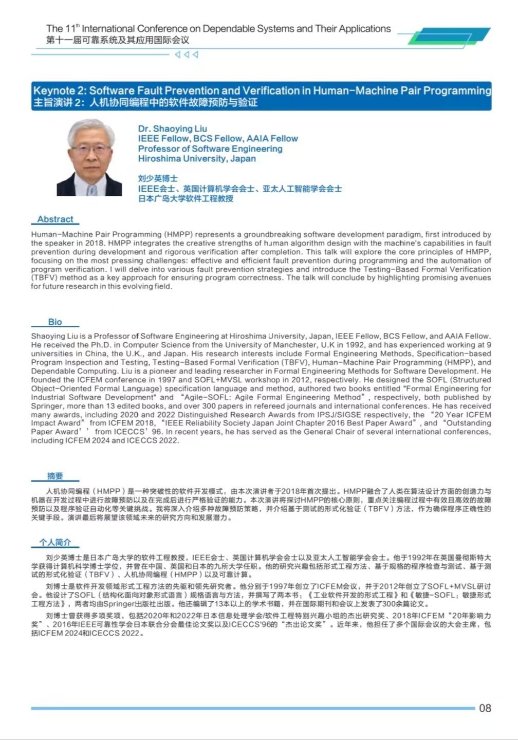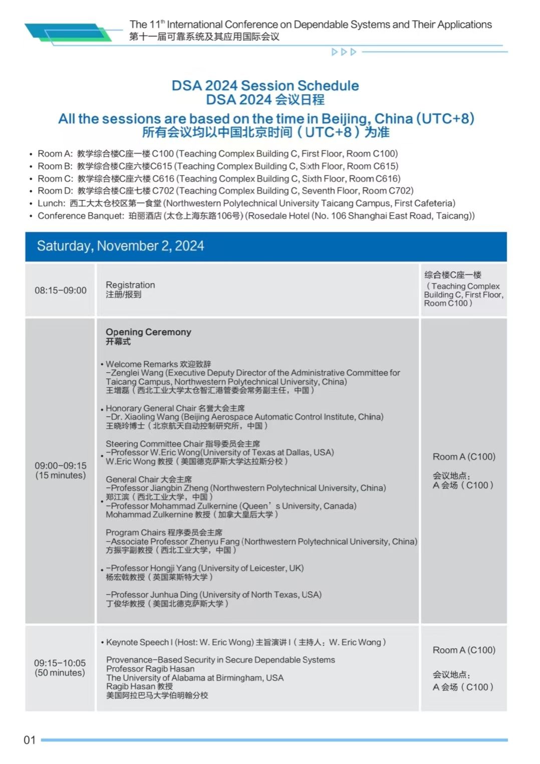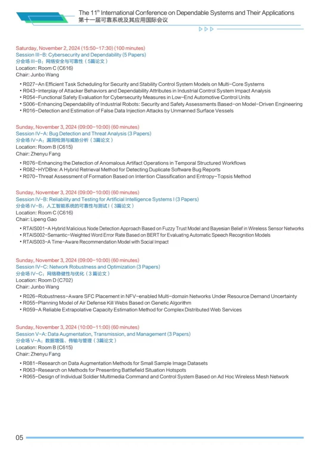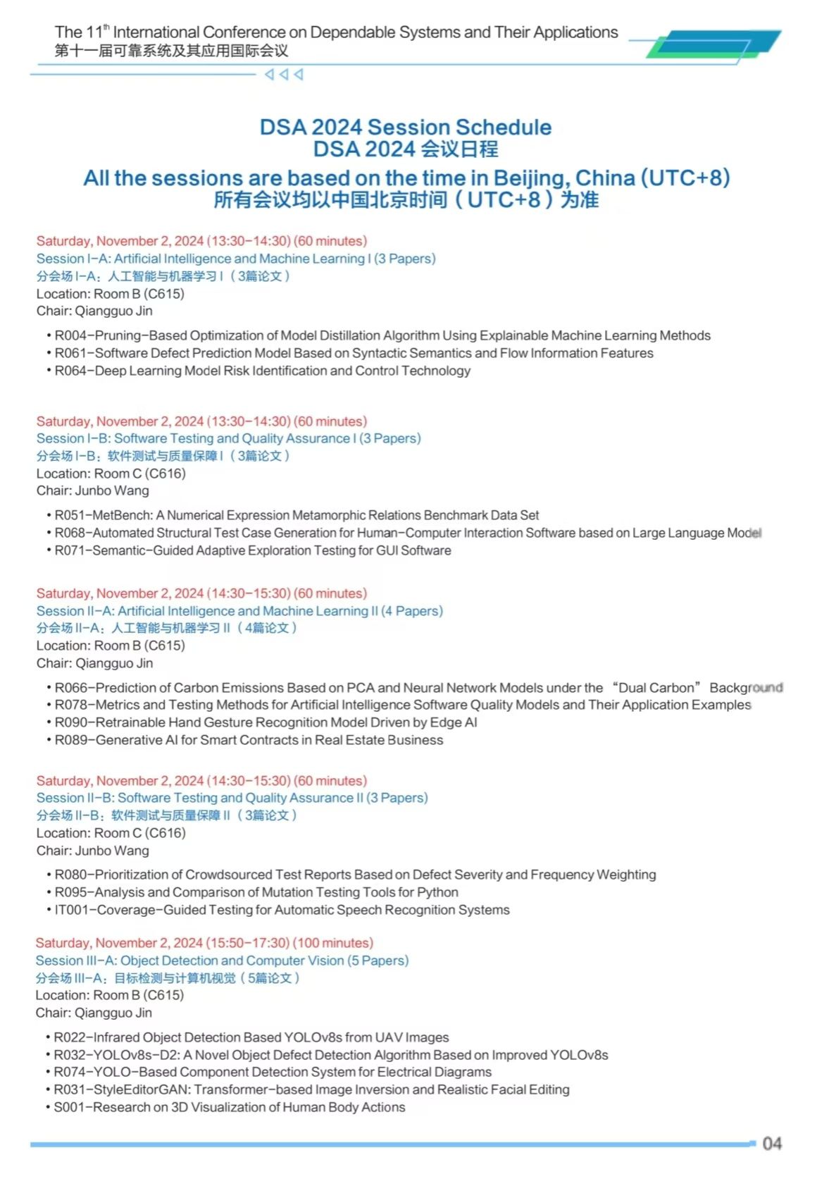 第十一届可靠系统及其应用国际会议(DSA 2024)将于2024年11月2日-3日在成人探花 太仓智汇港举办,会议安排如下,欢迎各位专家学者参会交流。