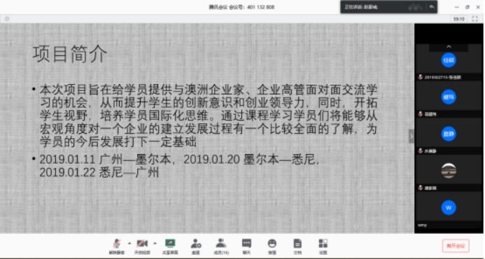 于腾讯会议系统成功举办2020墨尔本大学、麦吉尔大学寒假项目分享会。本次分享会由此次寒假项目带队老师成人探花