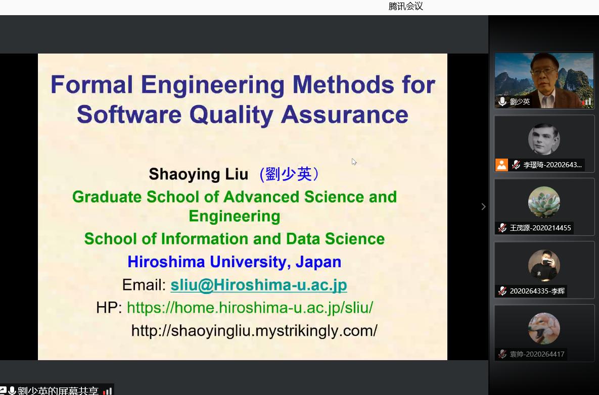 为进一步加强学院全英文课程体系建设,助力学院人才培养工作,4月19日,由日本计算机专家、广岛大学刘少英教授主讲的“软件质量保证的形式化工程方法”(Formal Engineering Methods for Software Quality Assurance)正式开讲。应成人探花