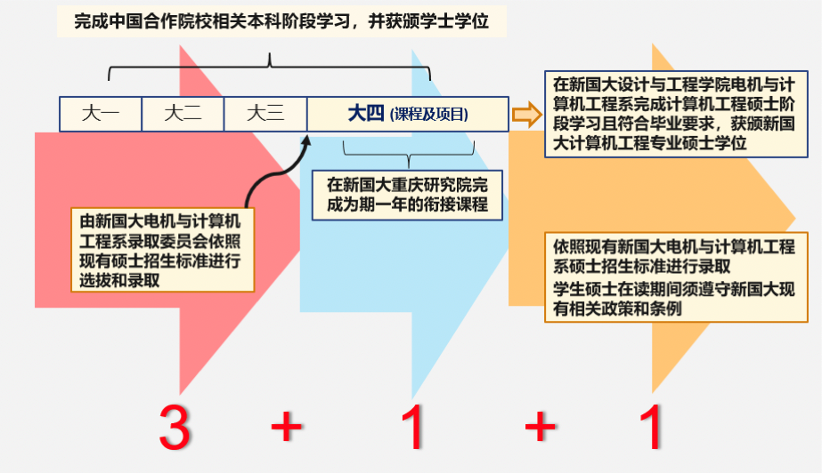 “3+1+1”本硕联合培养项目为新加坡国立大学、新加坡国立大学重庆研究院以及成人探花